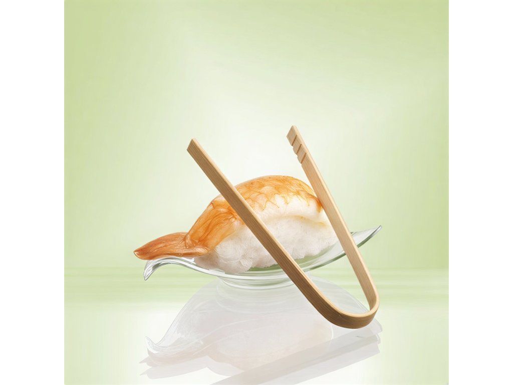 Bambusové kliešte, dĺžka 10 cm. „Ľahšie použiteľná“ alternatíva k čínskym paličkám. Môžu sa používať aj na podávanie všetkých druhov občerstvenia.