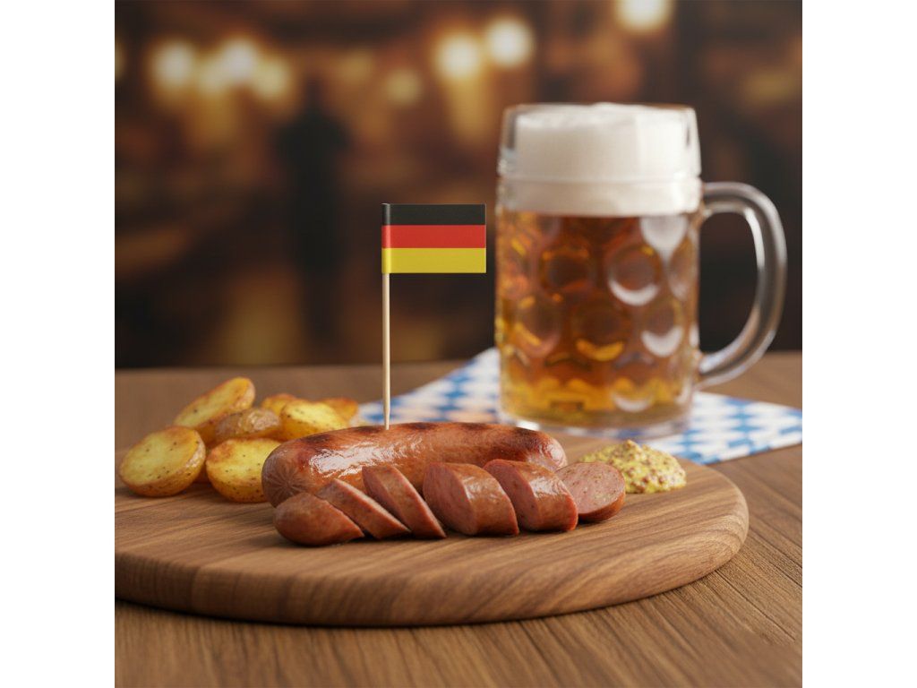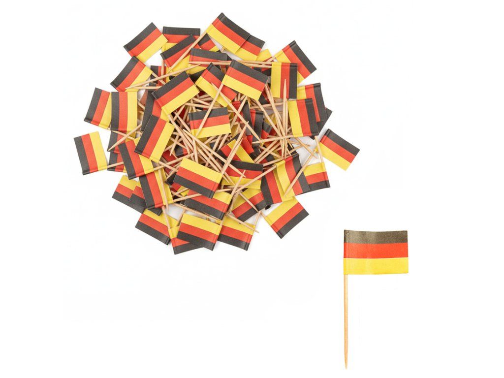 - Typ: drevené špáradlá/tyčinky s papierovou nemeckou vlajkou