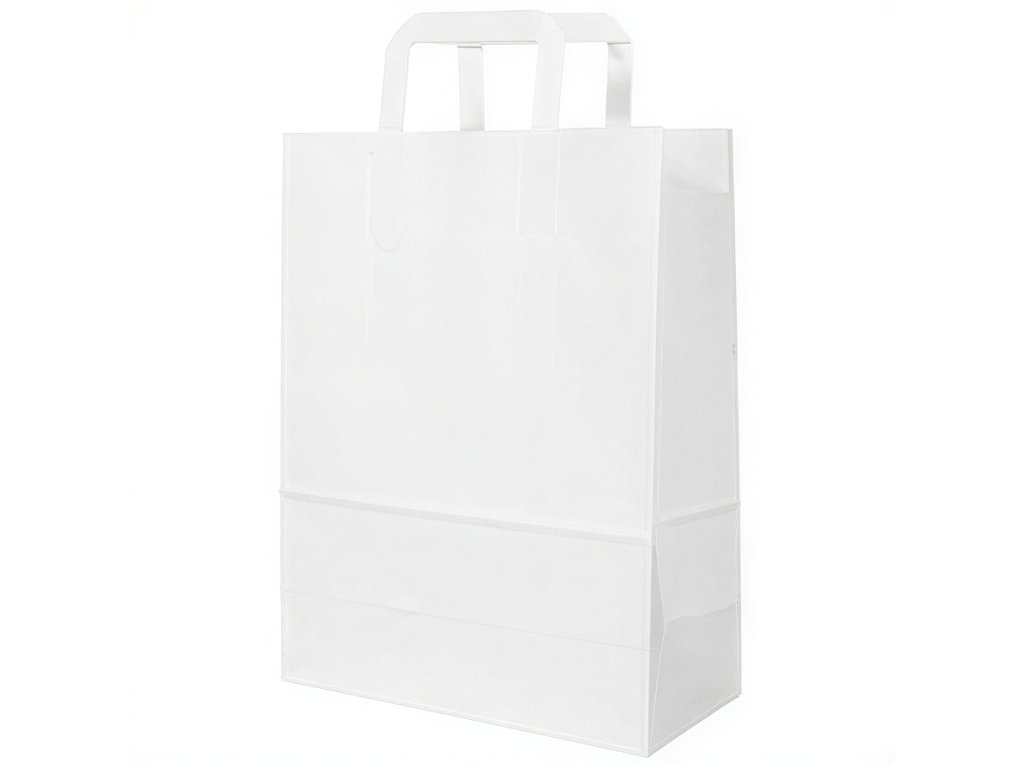 Biele papierové tašky s uchami na catering a ekologické nakupovanie, 32x16x42, 250 ks