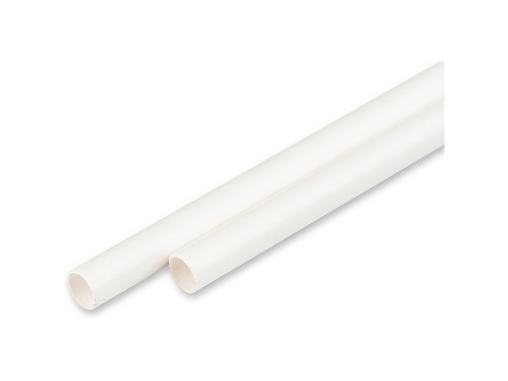 Rovné papierové slamky s priemerom 12 mm a dĺžkou 20,5 cm v bielej farbe.