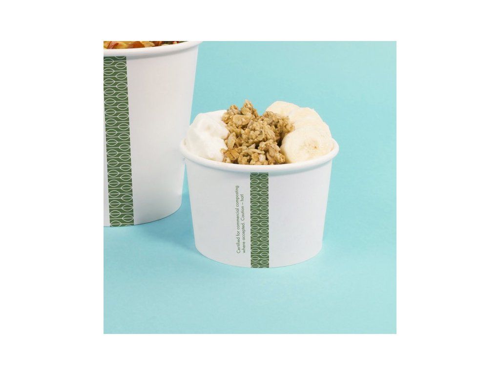 Vysoká odolnosť: Vďaka PLA vrstve miska nepremoká a drží svoj tvar aj pri kontakte s horúcim obsahom alebo roztekajúcim sa dezertom.
