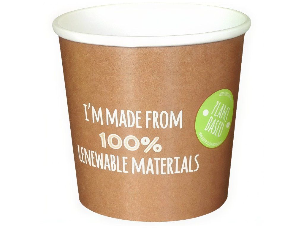 Materiál: papier s vnútornou vrstvou z rastlinného PLA (kukuričný škrob)