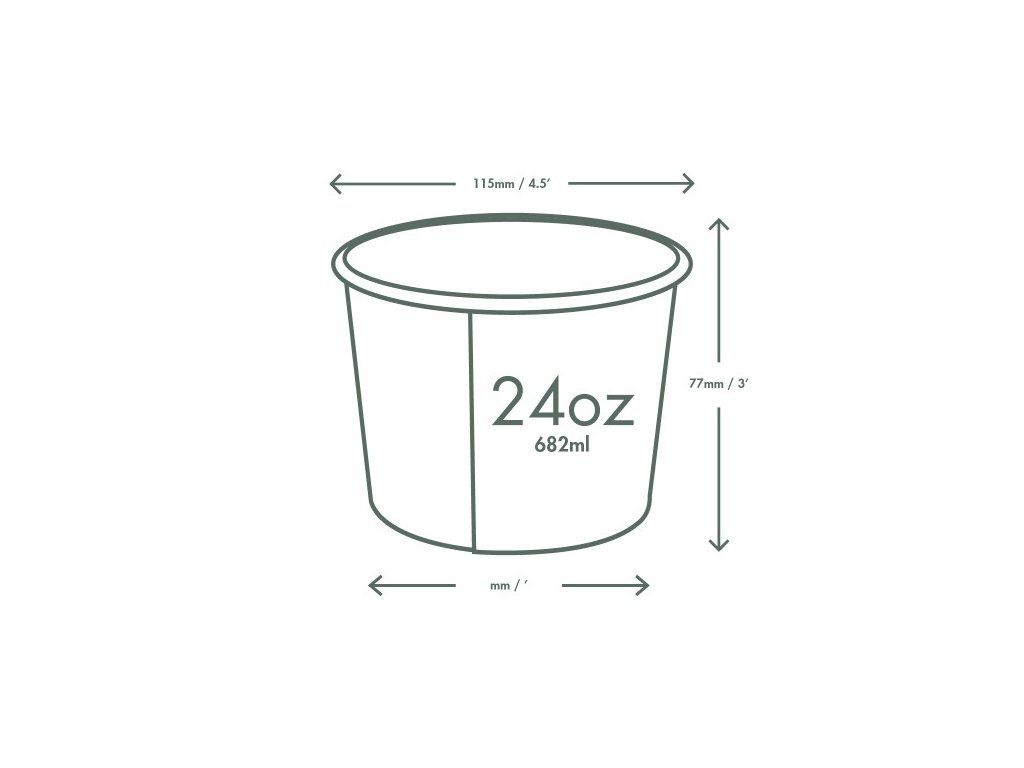 Hľadáte ekologický obal na skutočne veľkú porciu polievky alebo hlavné jedlo? Táto papierová miska od prémiovej značky Vegware je vyrobená z vysokokvalitného papiera s vnútornou vrstvou z rastlinného materiálu PLA (kukuričný škrob). Vďaka tomu je plne kompostovateľná a zároveň vysoko odolná voči pretečeniu. Štýlová zelená potlač priamo na miske jasne komunikuje váš ekologický prístup a buduje dôveru u vašich zákazníkov. Široký profil misky (115 mm) a veľkorysý objem 700 ml zaisťujú maximálny komfort pri konzumácii aj tých najsýtejších pokrmov. Balenie obsahuje 25 ks a v našej ponuke k nim nájdete aj kompatibilné viečka.