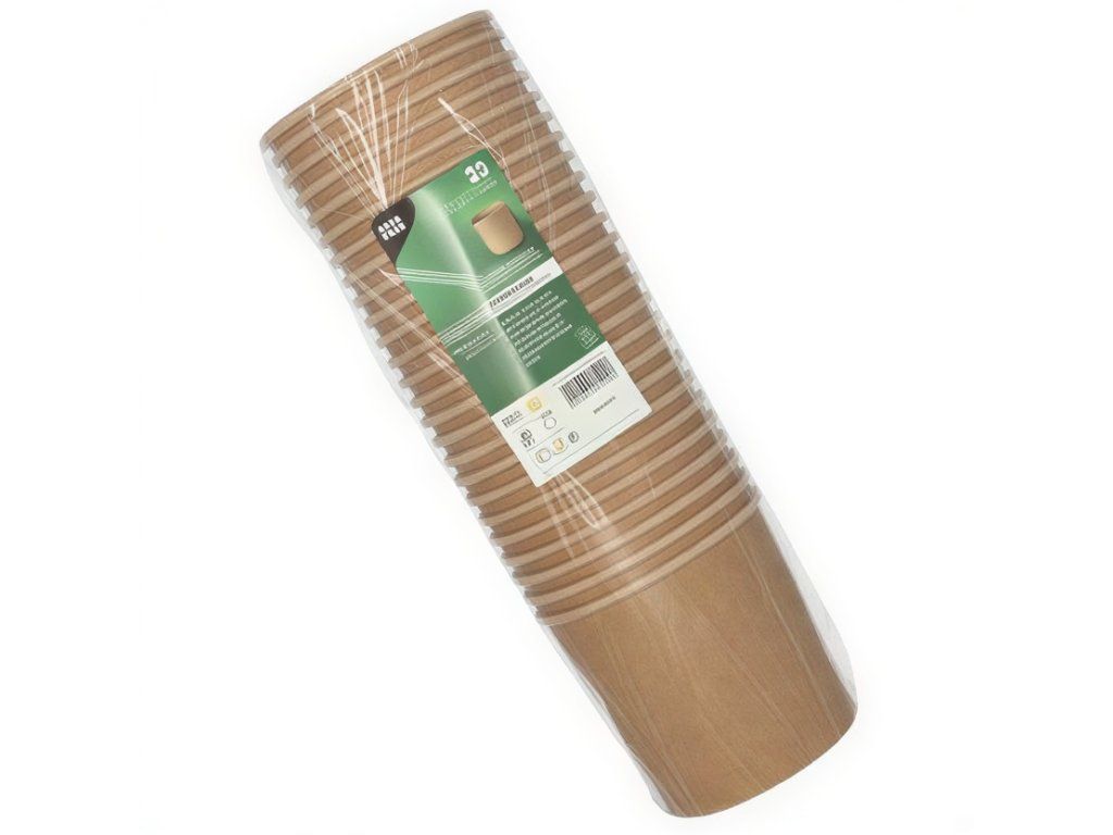 Materiál: papier s vnútornou vrstvou z rastlinného PLA (kukuričný škrob)