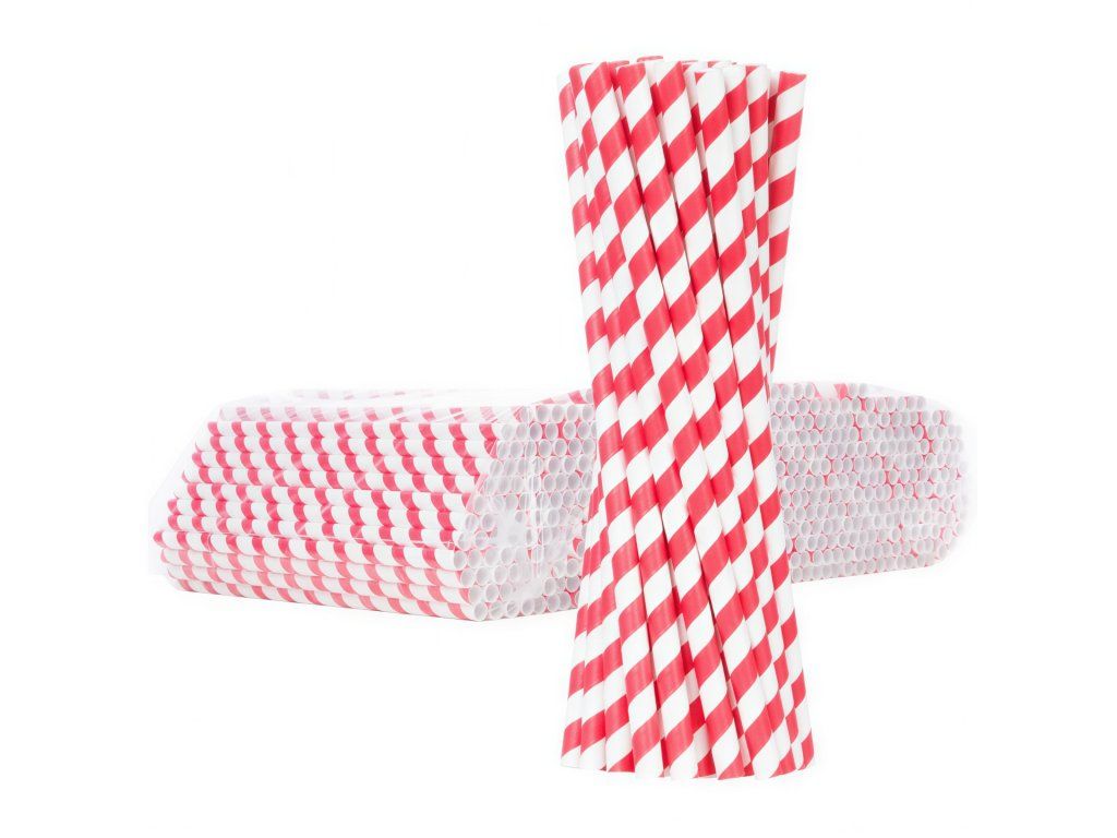 Papierové slamky s červenými pruhmi, priemerom 8 mm a dĺžkou 20,5 cm