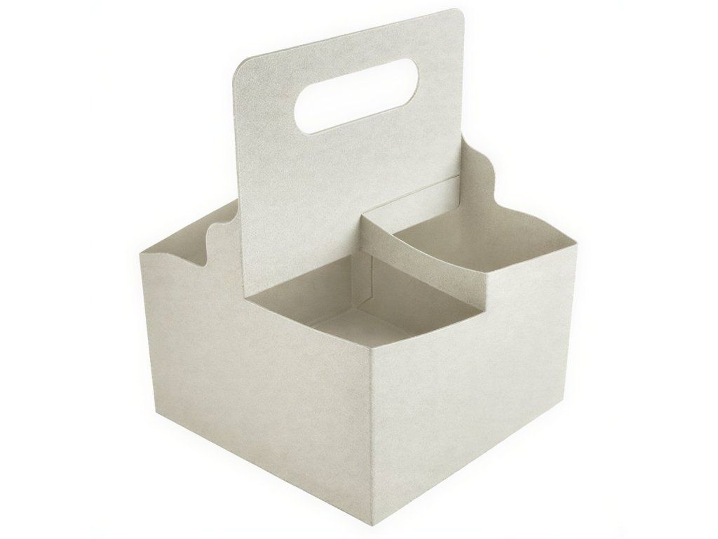 Vyrobené výlučne z papiera. Najväčšou výhodou týchto držiakov pohárov je rukoväť, ktorá výrazne uľahčuje prenášanie nápojov.