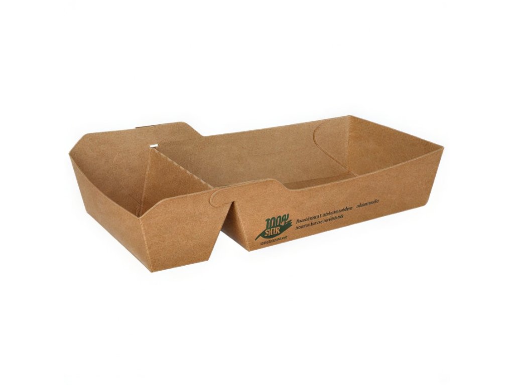 Ekologické dvojdielne tácky na čipsy, rozmery 15,5 cm x 8,5 cm x 3,8 cm.