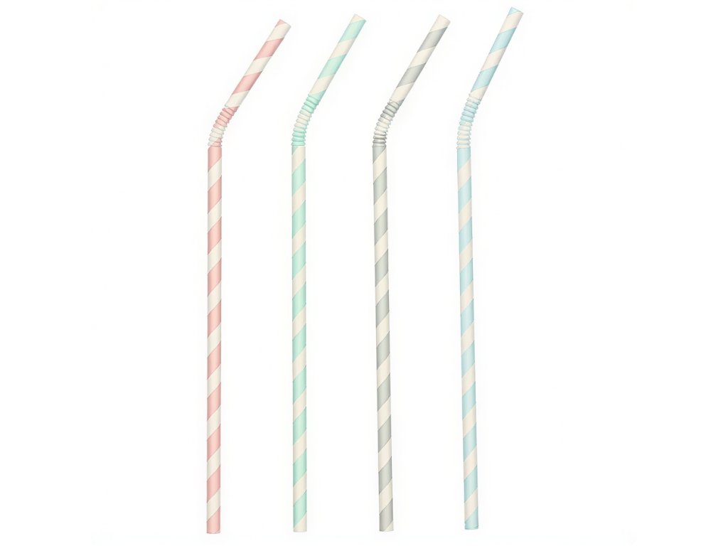 Ohebné papierové slamky v rôznych pastelových farbách, s priemerom 6 mm a dĺžkou 22 cm.