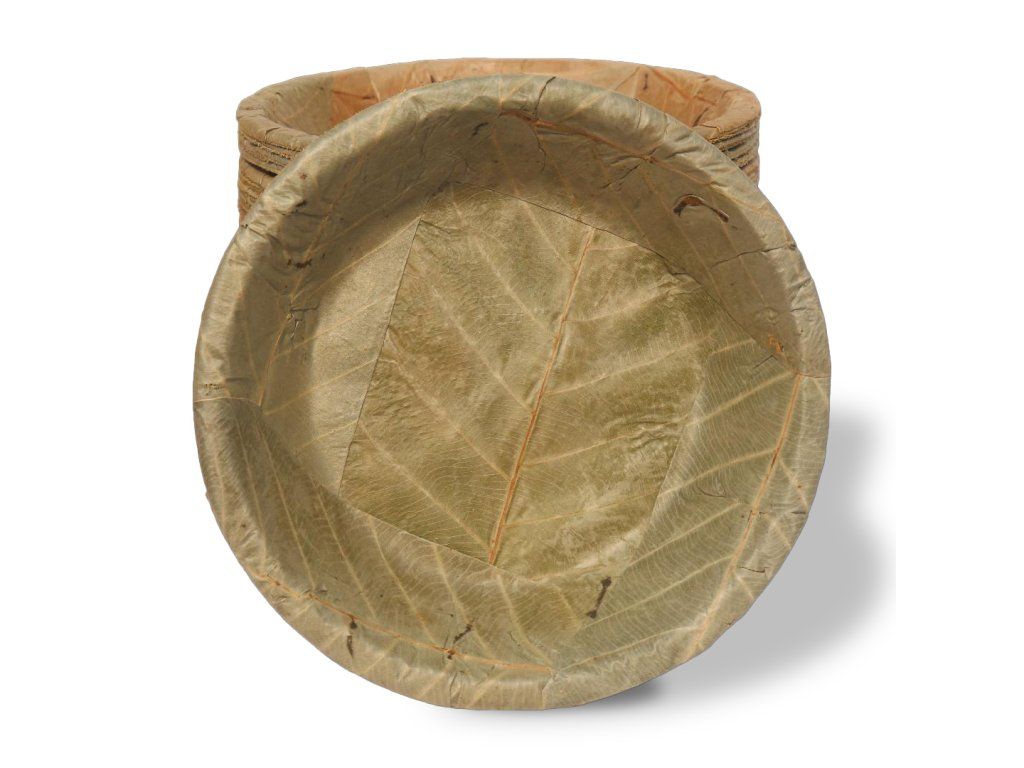 Hlboký tanier vyrobený z listov stromu Sal, priemer 19,5 cm, výška 3,25 cm, 500 ml, 20 kusov.