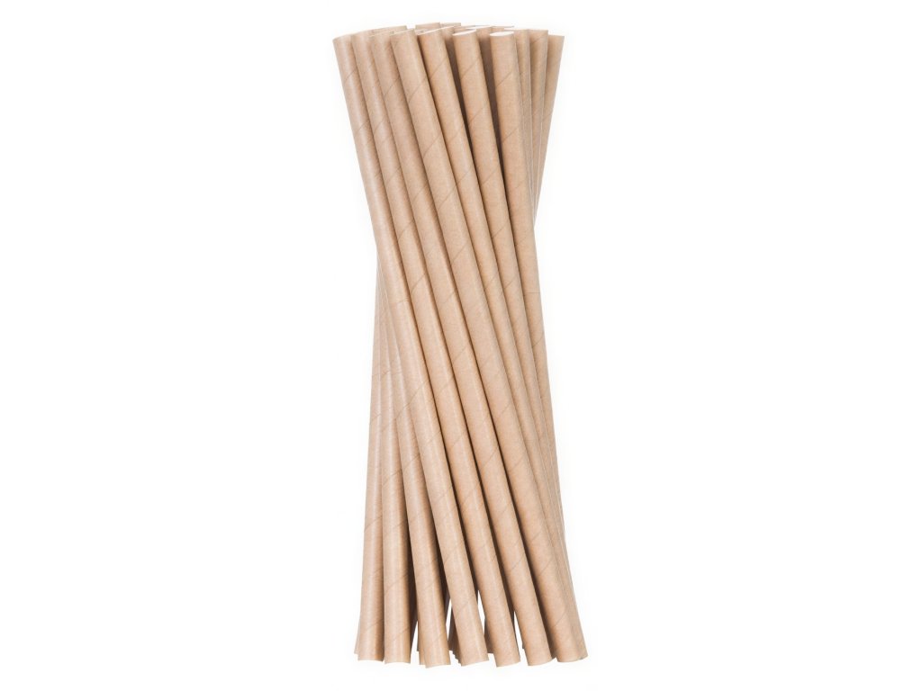 Kraftové papierové slamky s priemerom 6 mm a dĺžkou 20,5 cm.