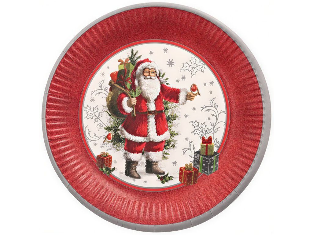 Vianočné papierové taniere so sviatočným motívom, 23 cm, 10 ks.