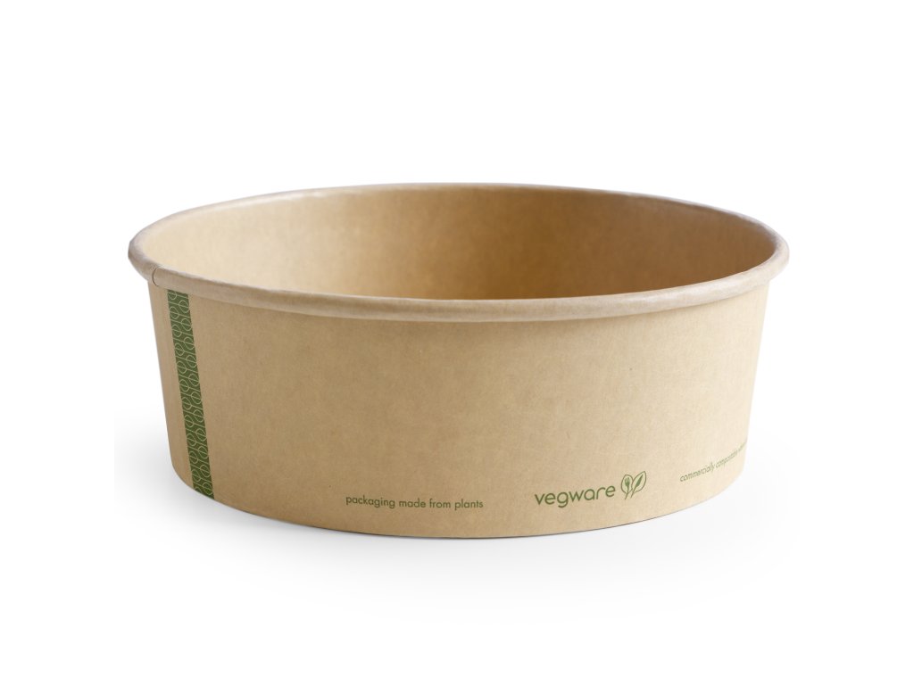 Hnedé/kraftové papierové misky (ponúkame aj biele misky) s vnútornou vrstvou z PLA, s objemom 1000 ml a priemerom 185 mm. Pri ich výrobe neboli použité žiadne plasty!