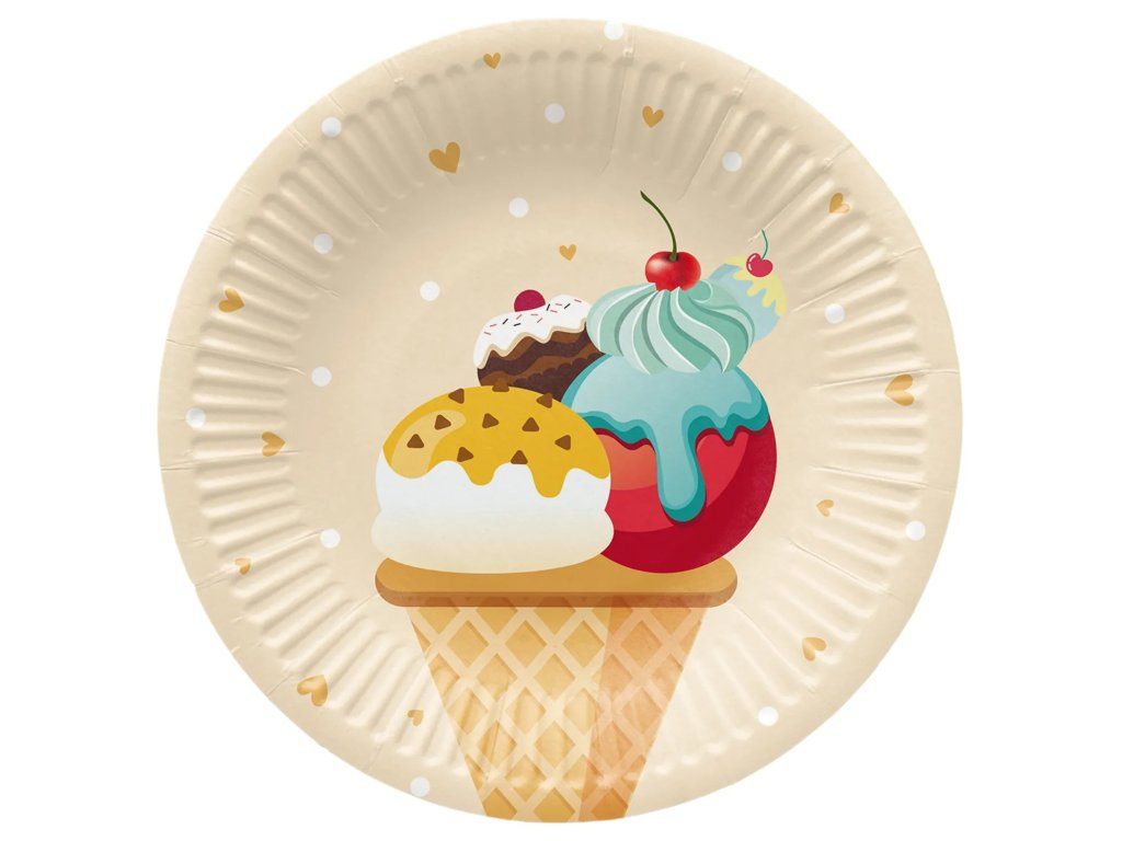 Kruhové papierové taniere „Ice Cream“ 18 cm, 8 kusov
