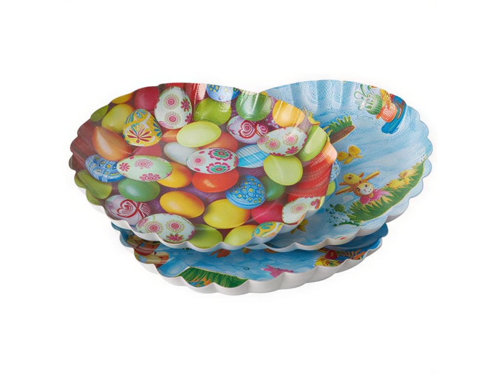 Veľkonočné, ekologické, okrúhle, ploché taniere s priemerom 23 cm. Sú vyrobené zo 100 % papiera.