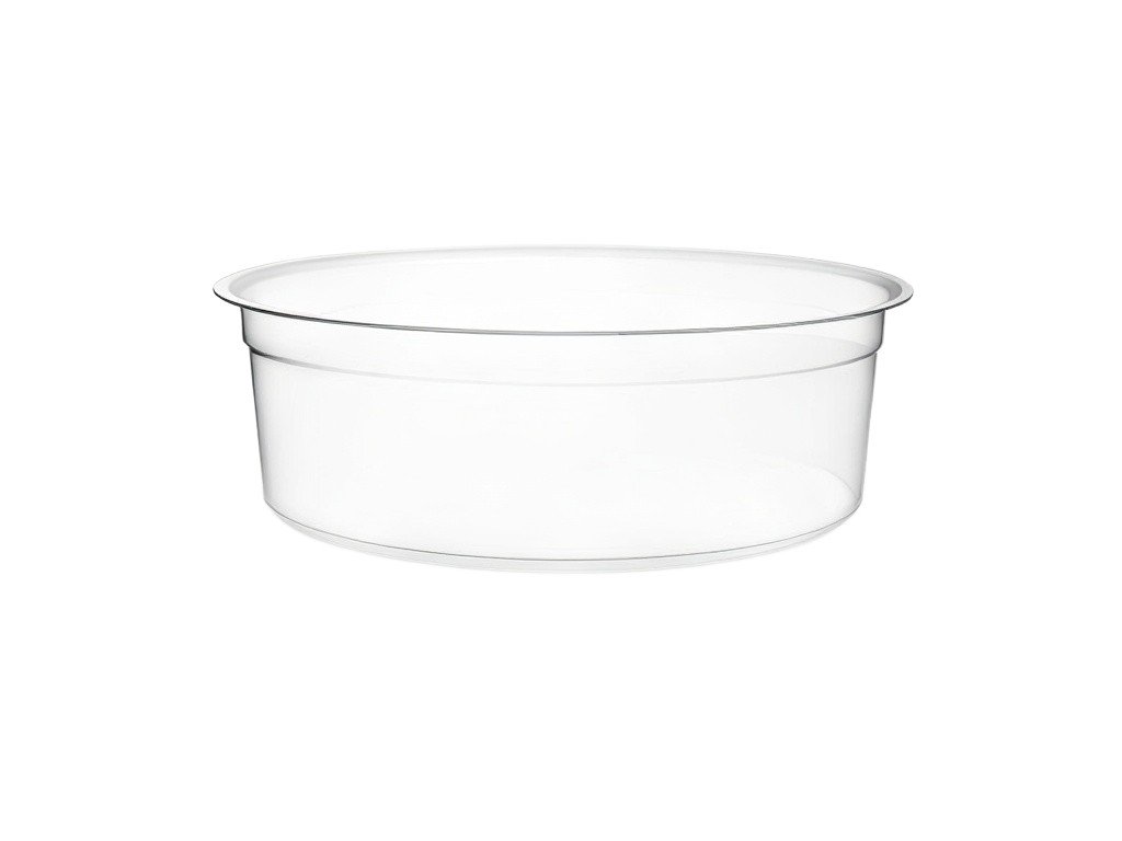 Ekologické, okrúhle nádoby na šaláty s objemom 250 ml, priemerom 120 mm a výškou 39 mm, vyrobené z PLA (kukuričná múka).