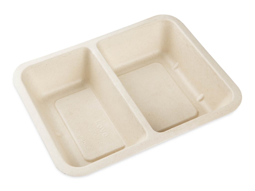 Ekologické a praktické riešenie pre stravovacie služby? Dvojdielne nádoby z cukrovej trstiny predstavujú ekologickú alternatívu k plastovým obalom – sú biologicky rozložiteľné, odolné voči vlhkosti a mastnote. Ideálne na uzatváranie a podávanie jedál na odnesenie. Vďaka vylepšenému dizajnu "Nová formula" umožňujú bezpečné skladovanie potravín až po dobu 72 hodín. Dve priehradky zabezpečujú jednoduché oddelenie hlavných jedál od príloh. Balenie obsahuje 50 ks – pripravené na profesionálne použitie v gastronómii.