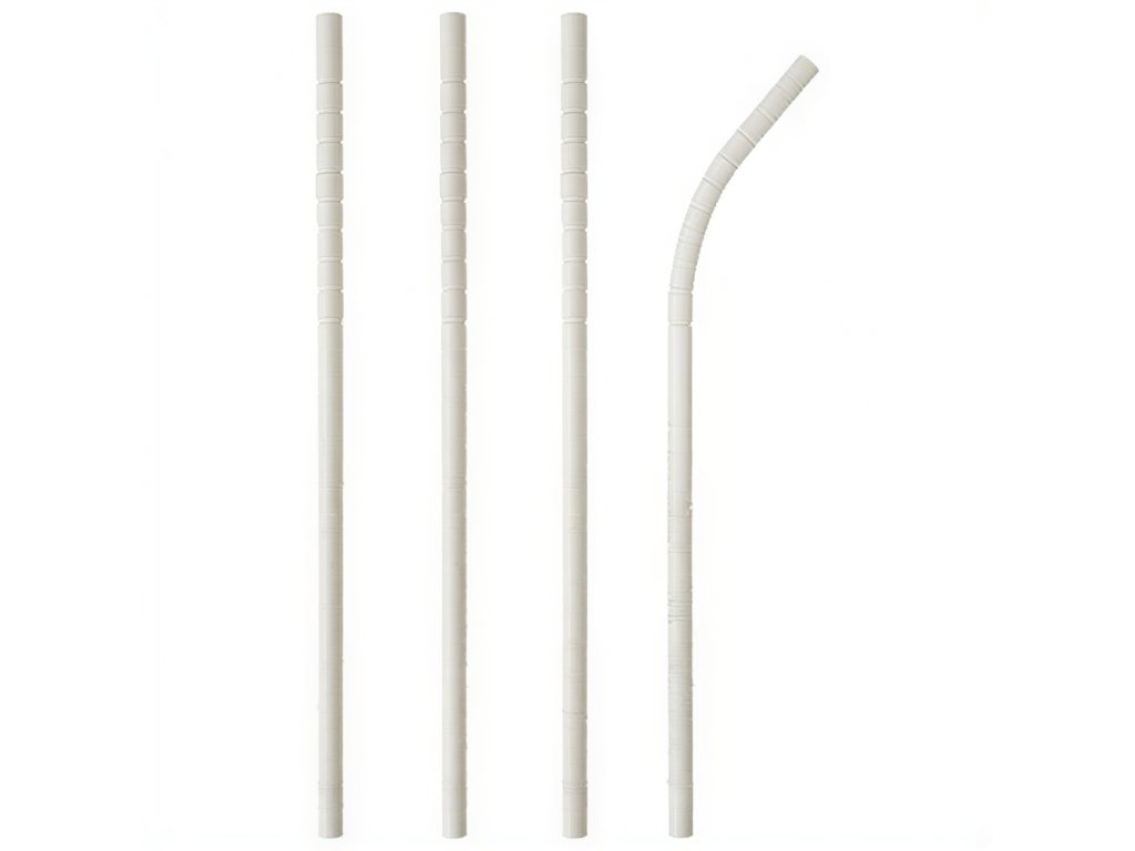 Biele, flexibilné papierové slamky s priemerom 6 mm a dĺžkou 20 cm.