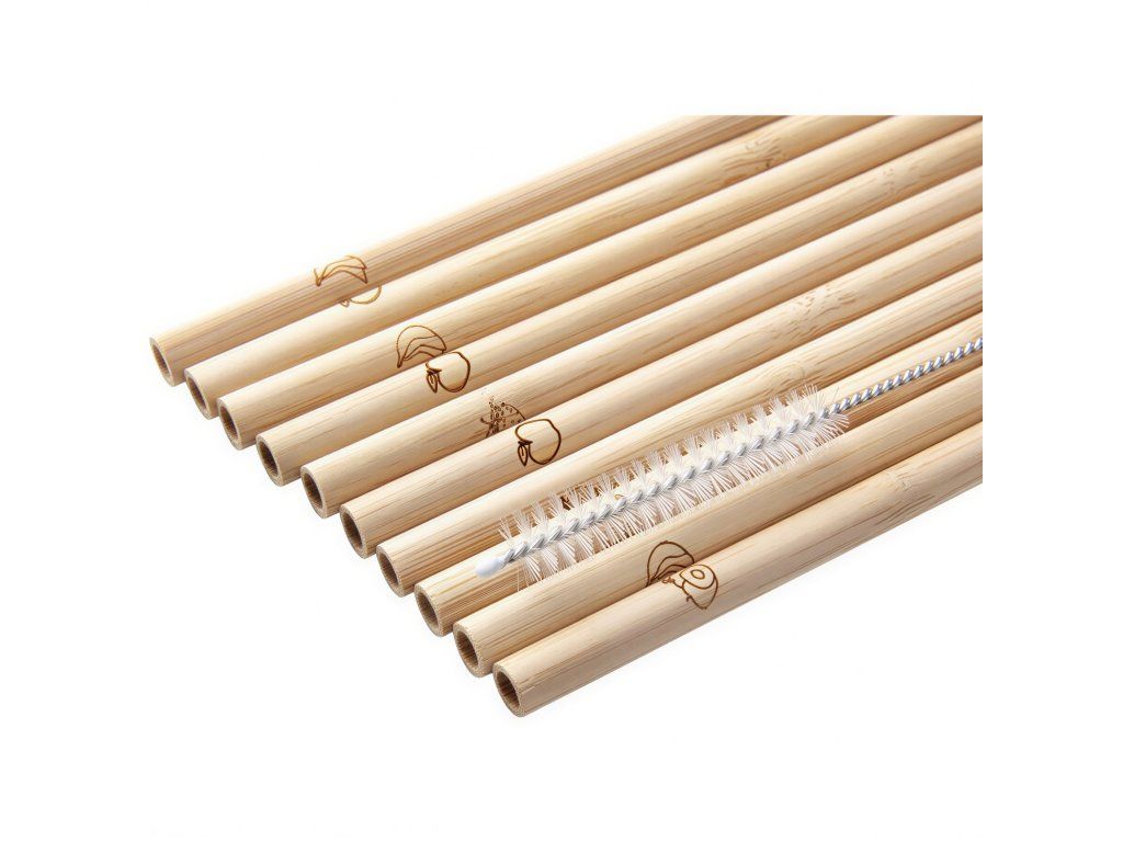 Opakovane použiteľné bambusové slamky bez kože, 10 ks + čistiaci prostriedok