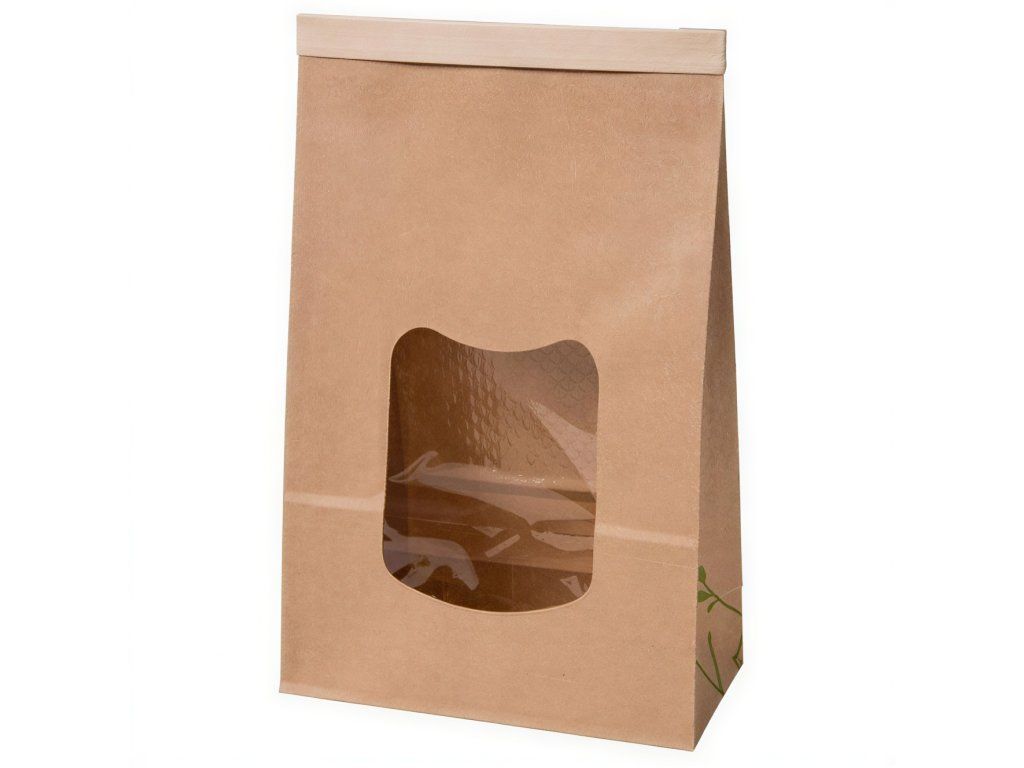 Papierová taška s okienkom z PLA, 3200 ml, 15,5 x 7 x 24 cm, 50 ks.