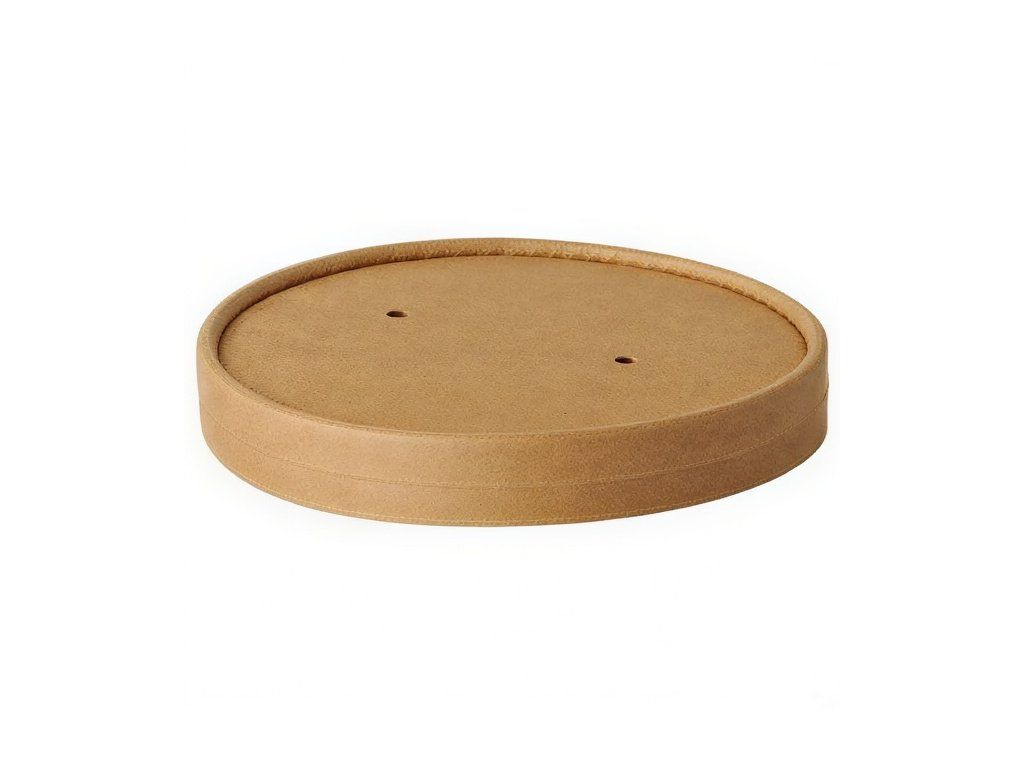 Ekologické viečka na poháre na polievku s priemerom 115 mm a objemom 760 ml – 940 ml. Vyrobené z papiera, potiahnuté rastlinným materiálom PLA (kukuričná múka).