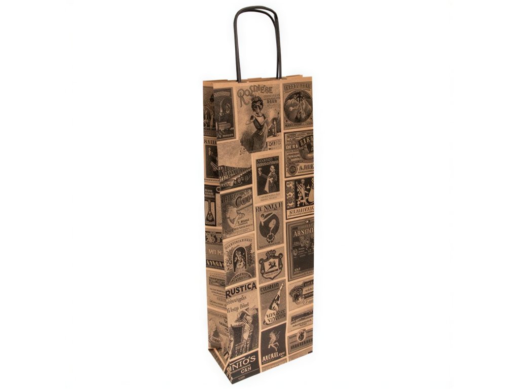Papierové tašky s rozmermi 14 + 8 x 40 cm – pojmú jednu fľašu. Majú pohodlné a odolné ucho.