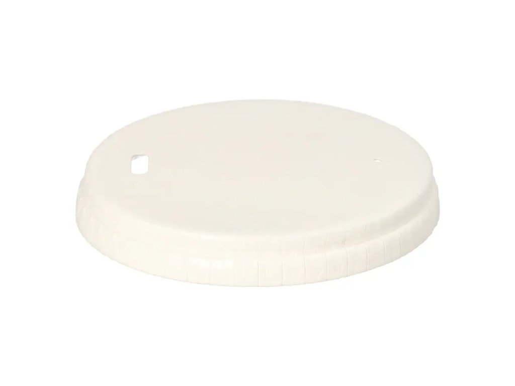 Ploché, biele viečka s priemerom 80 mm, s otvorom, cez ktorý môžete piť svoj obľúbený nápoj.