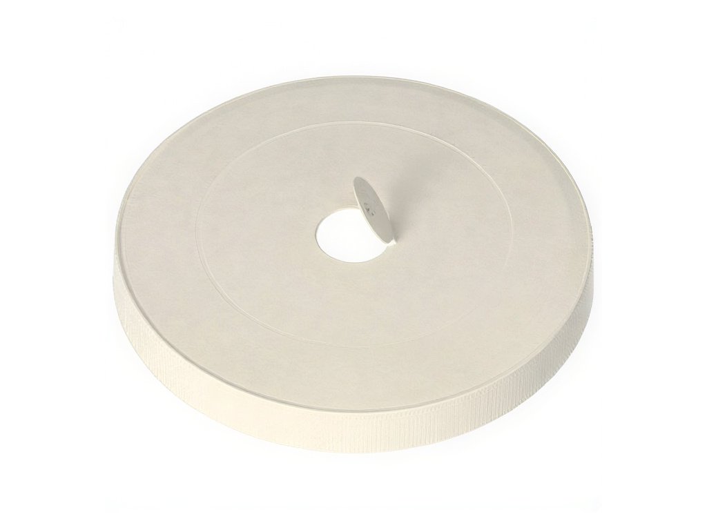 Ploché, biele viečka s priemerom 90 mm a otvorom na slamku. Vyrobené z papiera, potiahnuté rastlinným materiálom PLA.
