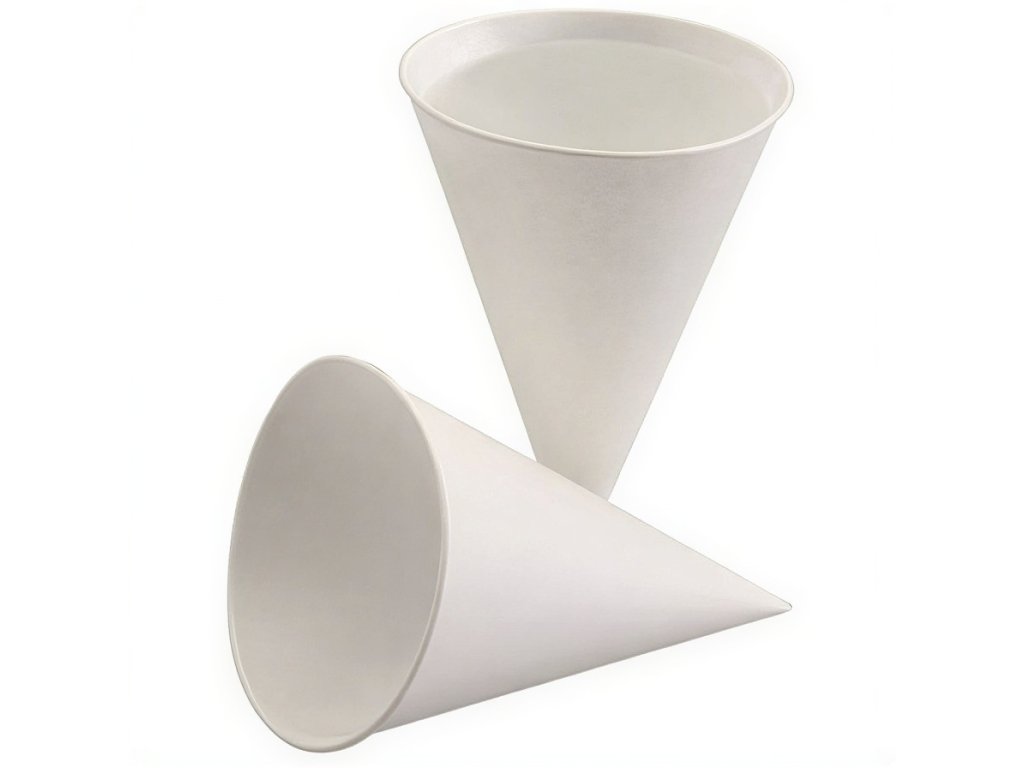 Ekologické poháre s objemom 120 ml, kužeľovitého tvaru. Vyrobené výlučne z papiera, bez akýchkoľvek umelých prísad.