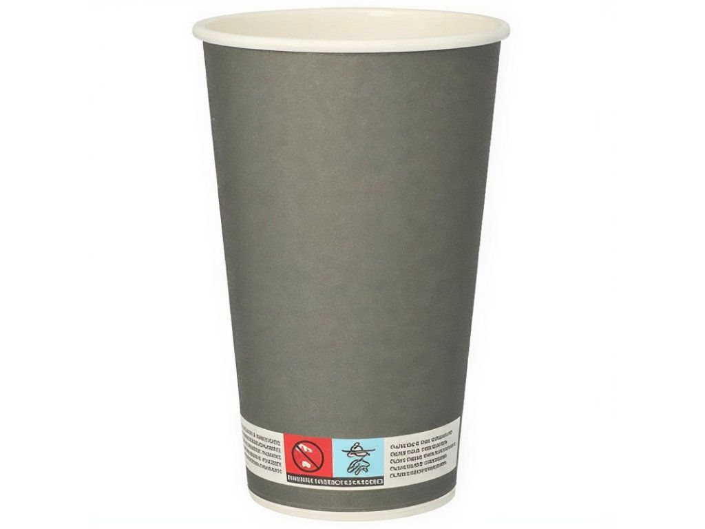 Ekologické šedé papierové poháre s objemom 400 ml.