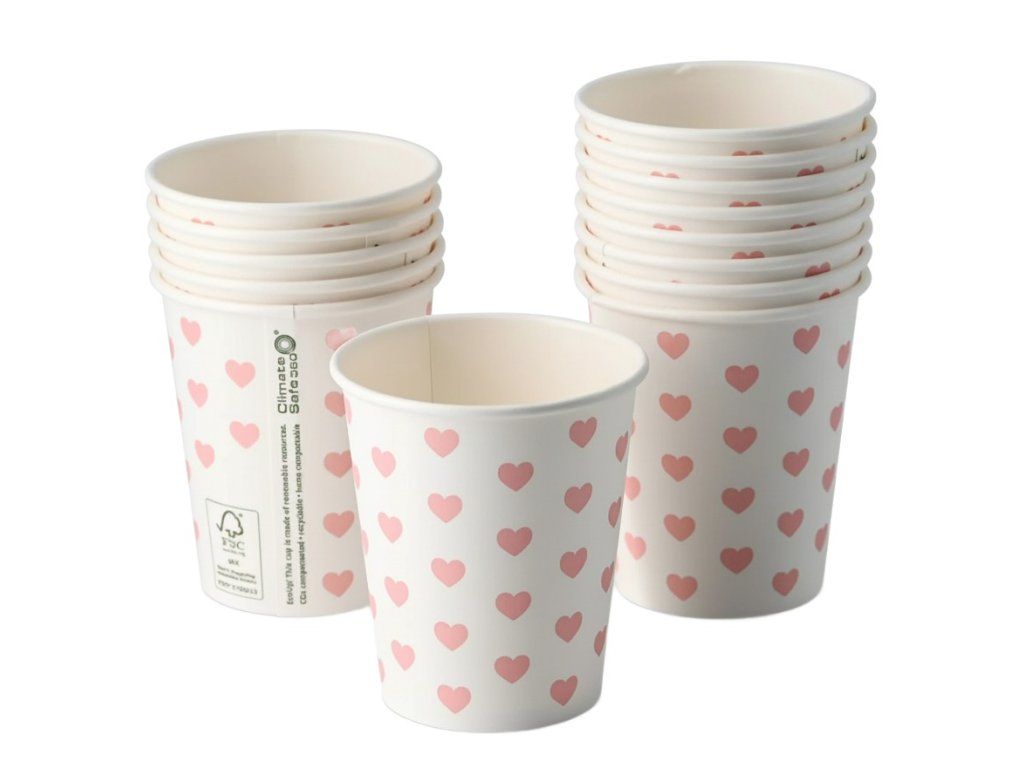 Jednorazové šálky na kávu a čaj so srdiečkami, bez príplatku, ekologické, 250 ml, 50 ks