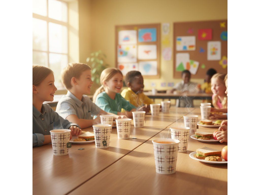 - Z čoho sú poháre vyrobené? Z disperzného papiera, ktorý nevyžaduje poplatok SUP – ekologická alternatíva k tradičným pohárom s povrchovou úpravou.