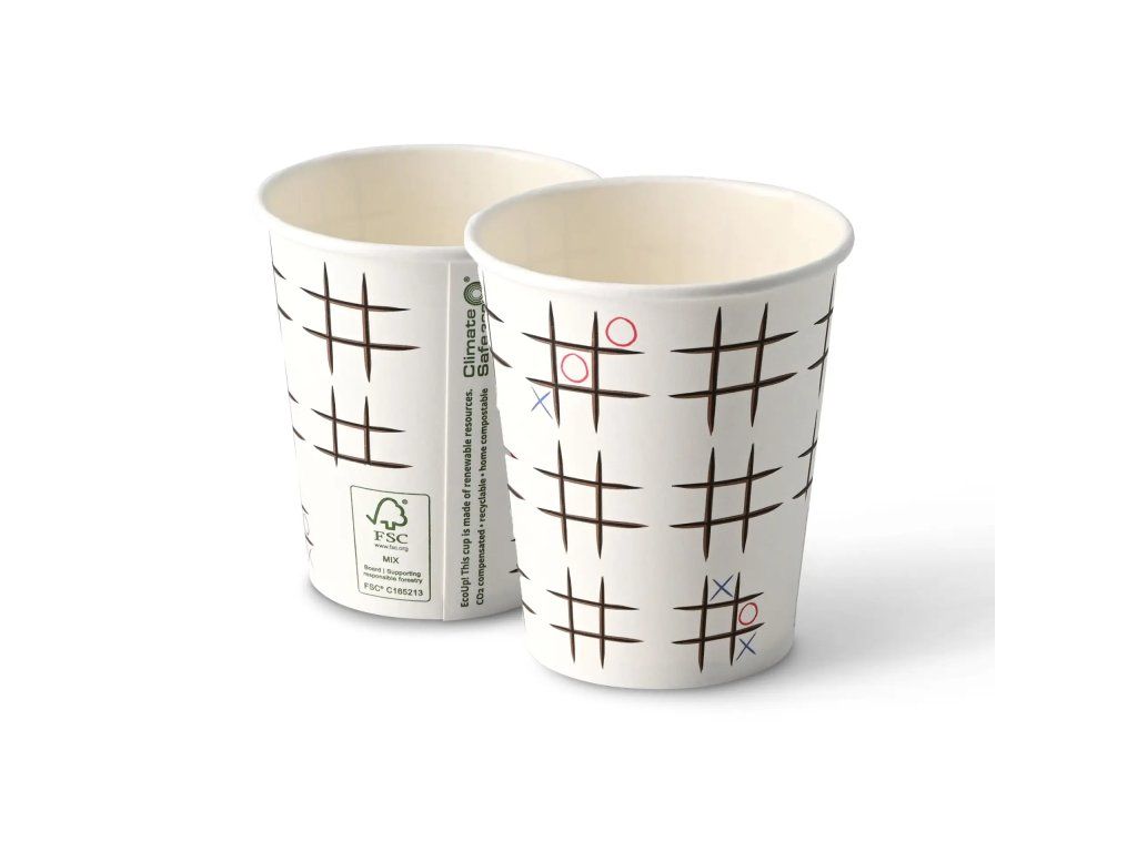 Papierové poháre s potlačou „Tic-Tac-Toe“ sú praktickým a zábavným riešením na podávanie kávy, čaju alebo studených nápojov. ☕❄️