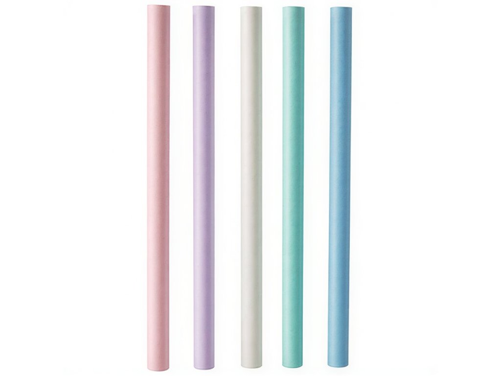 Rovné papierové slamky s priemerom 12 mm a dĺžkou 20 cm v pastelových farbách.