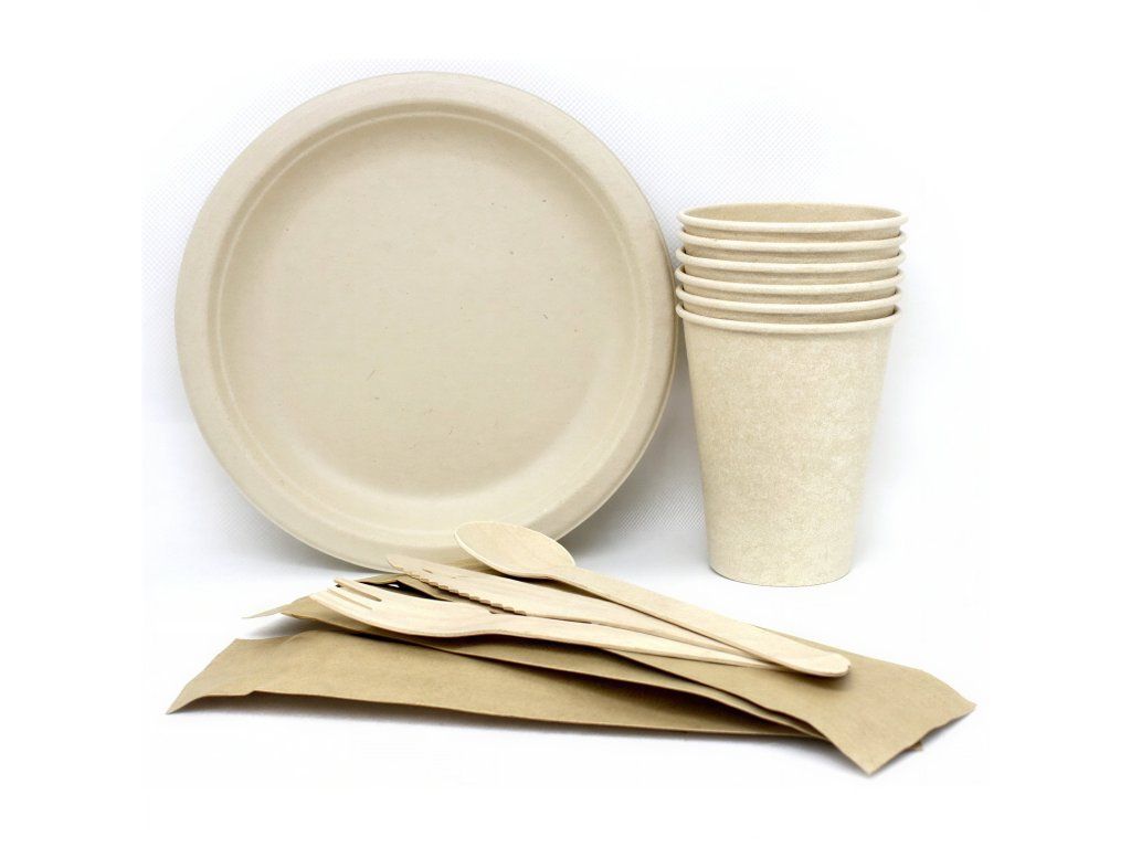 - 6 tanierov s priemerom 17,5 cm, vyrobených z cukrovej trstiny