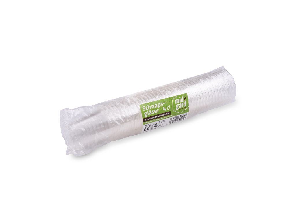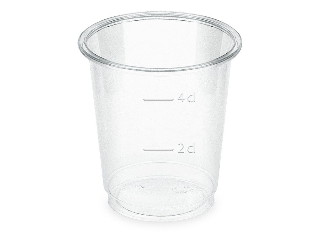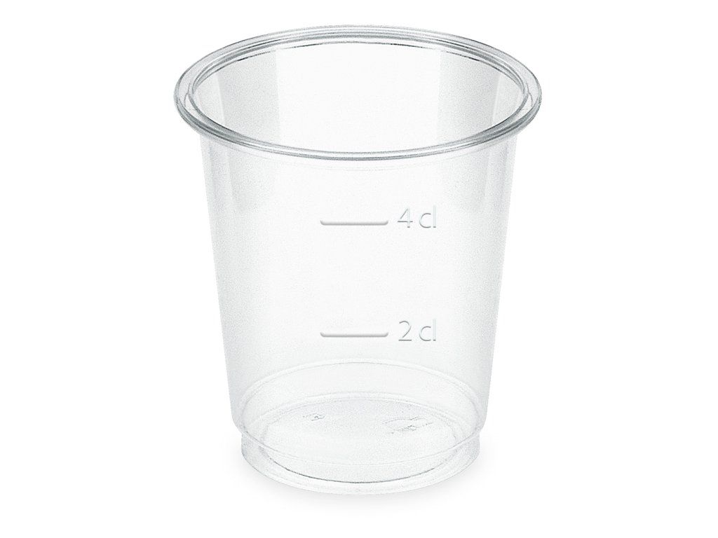 Na stene sú vyrazené dve objemy – 20 a 40 ml. Výrobok je vyrobený výlučne z rastlinného materiálu PLA (kukuričná múka).