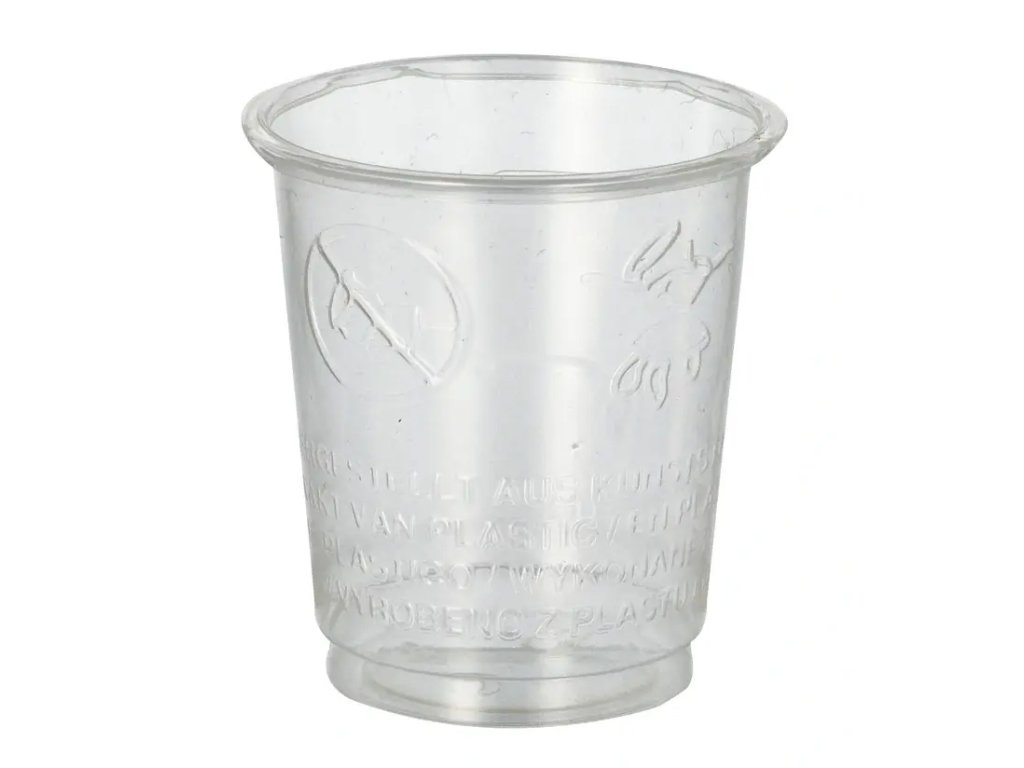 Ekologické poháre na alkohol s objemom 40 ml. Výrobok je vyrobený výlučne z rastlinného materiálu PLA (kukuričná múka).
