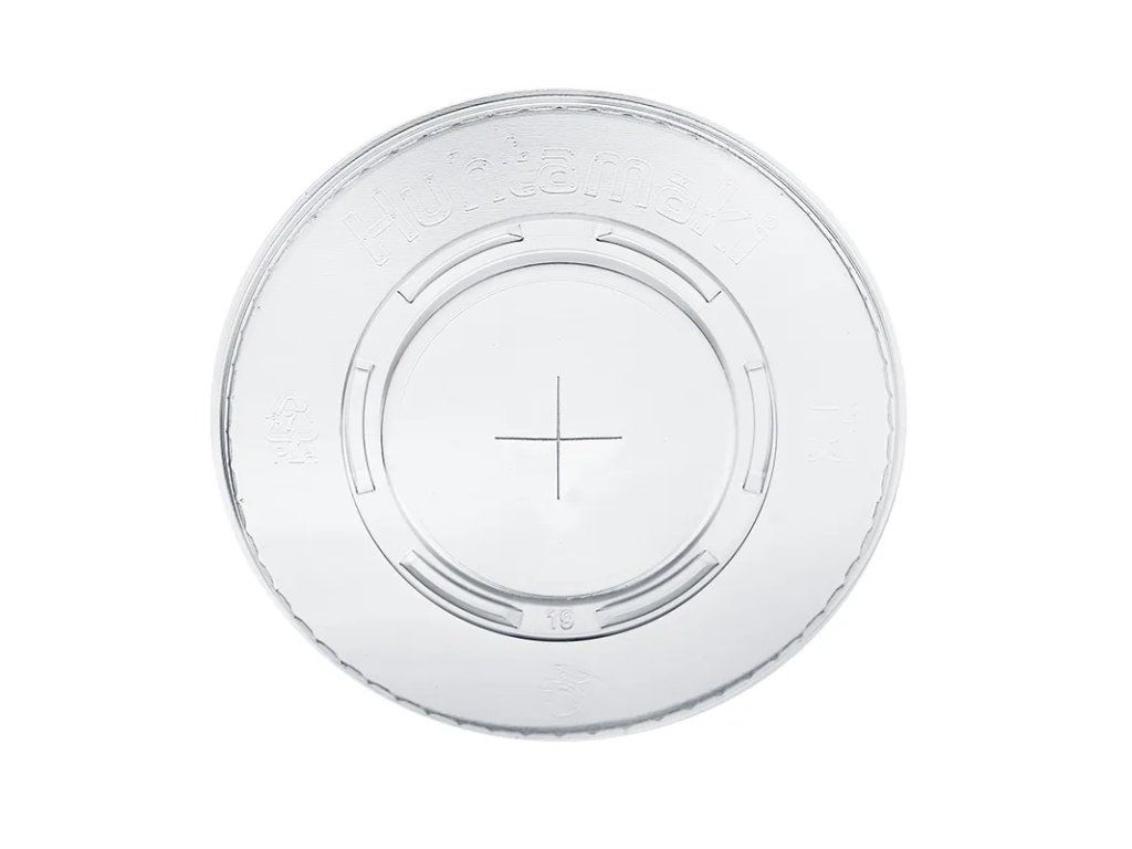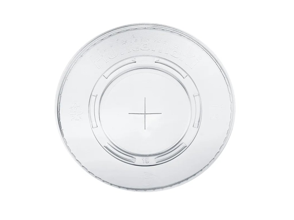 Ploché PET viečka s krížovým otvorom pre slamky, rPET, priemer 95 mm, 100 ks