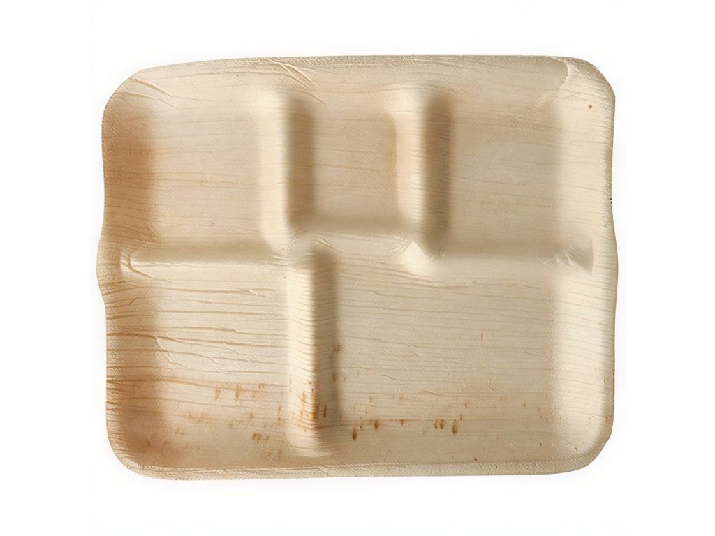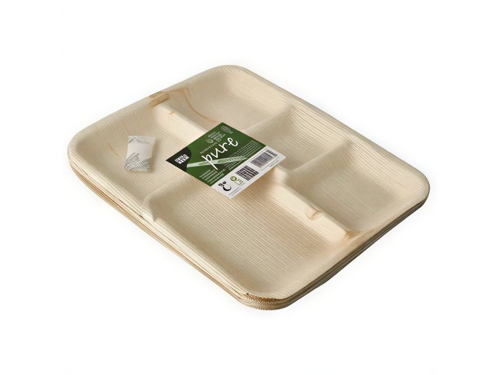 Ekologické taniere rozdelené na 5 častí, rozmery 27 cm x 21,5 cm x 2 cm.