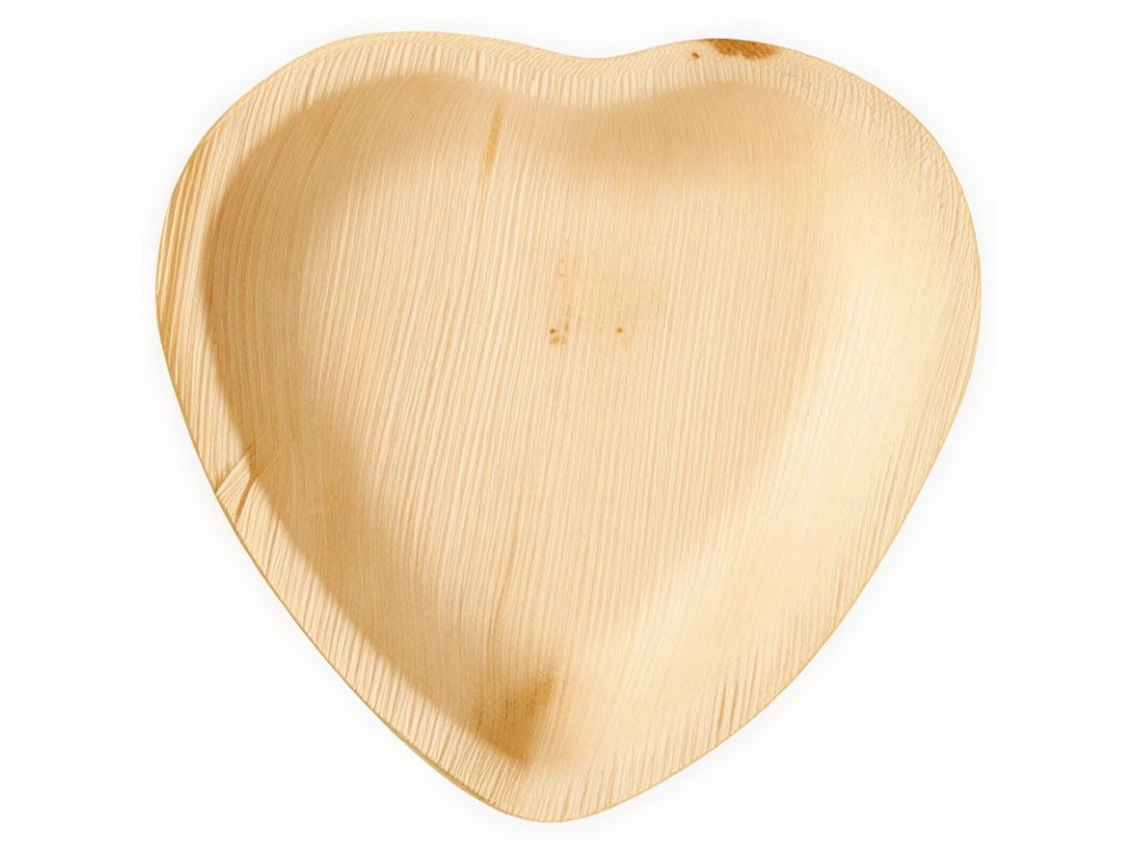 Ekologické taniere v tvare srdca s rozmermi 15,5 cm x 3 cm.