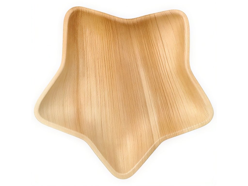 Prírodné taniere v tvare vianočnej hviezdy, vyrobené zo 100 % palmových listov. Pevné, ekologické a mimoriadne estetické – každý kus má jedinečnú štruktúru listov, ktorá zdôrazňuje ich výnimočný rustikálny charakter. Ideálne na slávnostné stoly, večierky, tematické večere a podujatia, kde je dôležitý štýl aj ekológia.