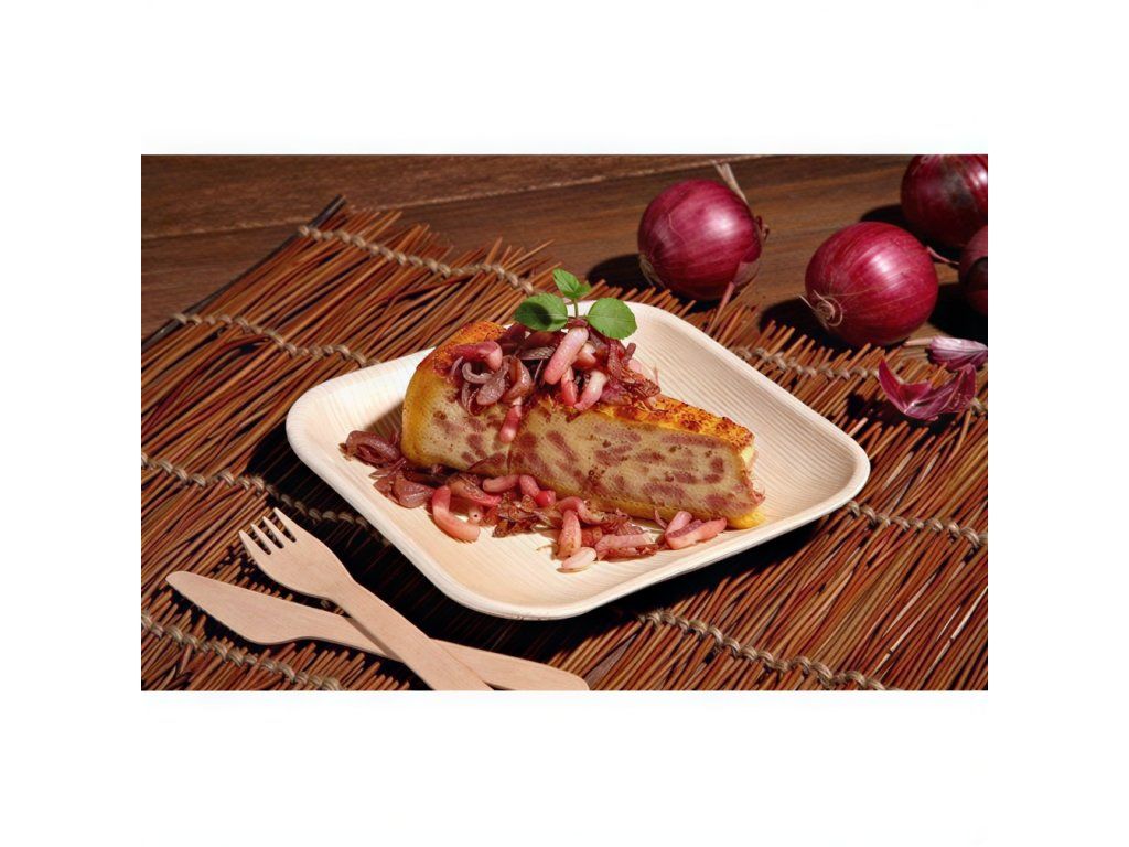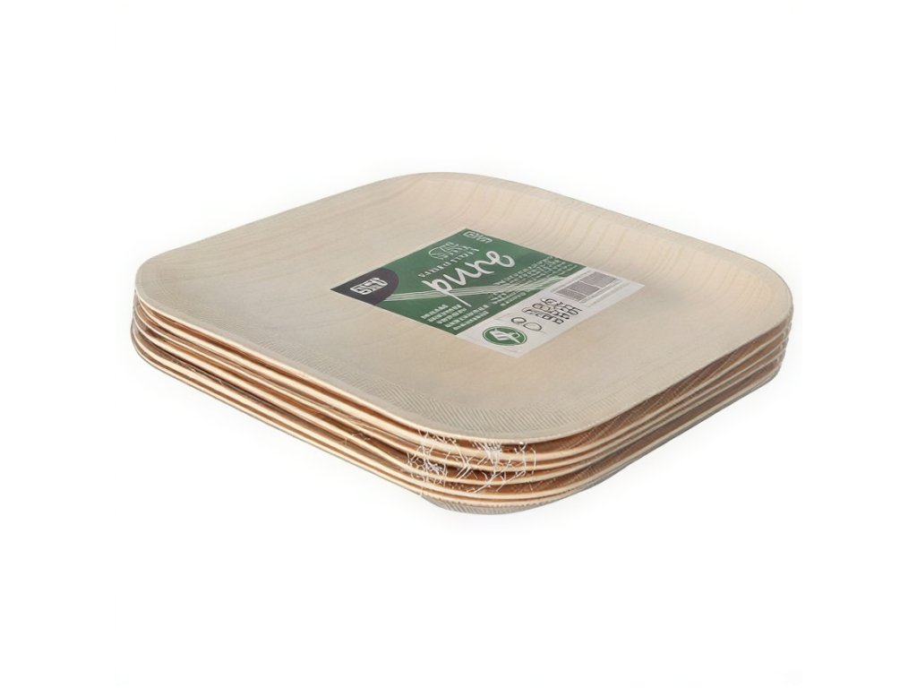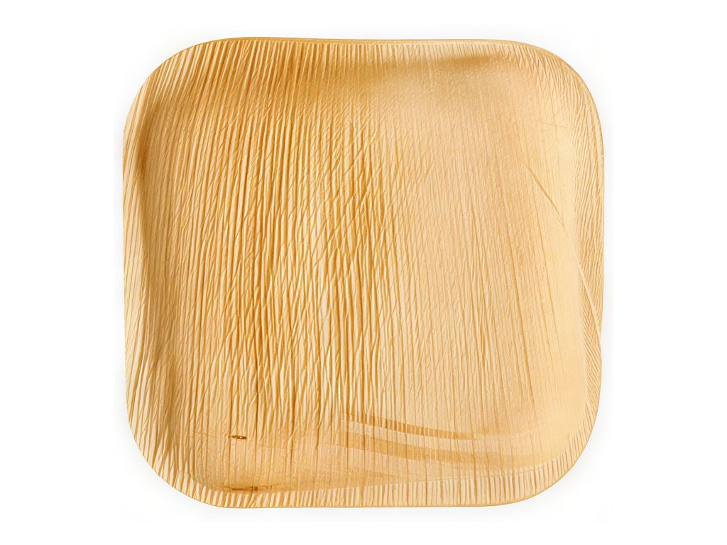 Ekologické štvorcové taniere s rozmermi 18 cm x 18 cm x 1,5 cm.