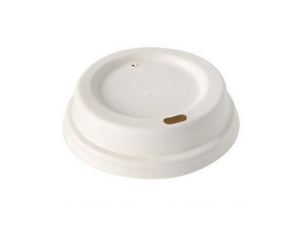 Ploché viečka v prírodnej béžovej farbe pre poháre s priemerom 80 mm, vyrobené zo 100 % cukrovej trstiny.