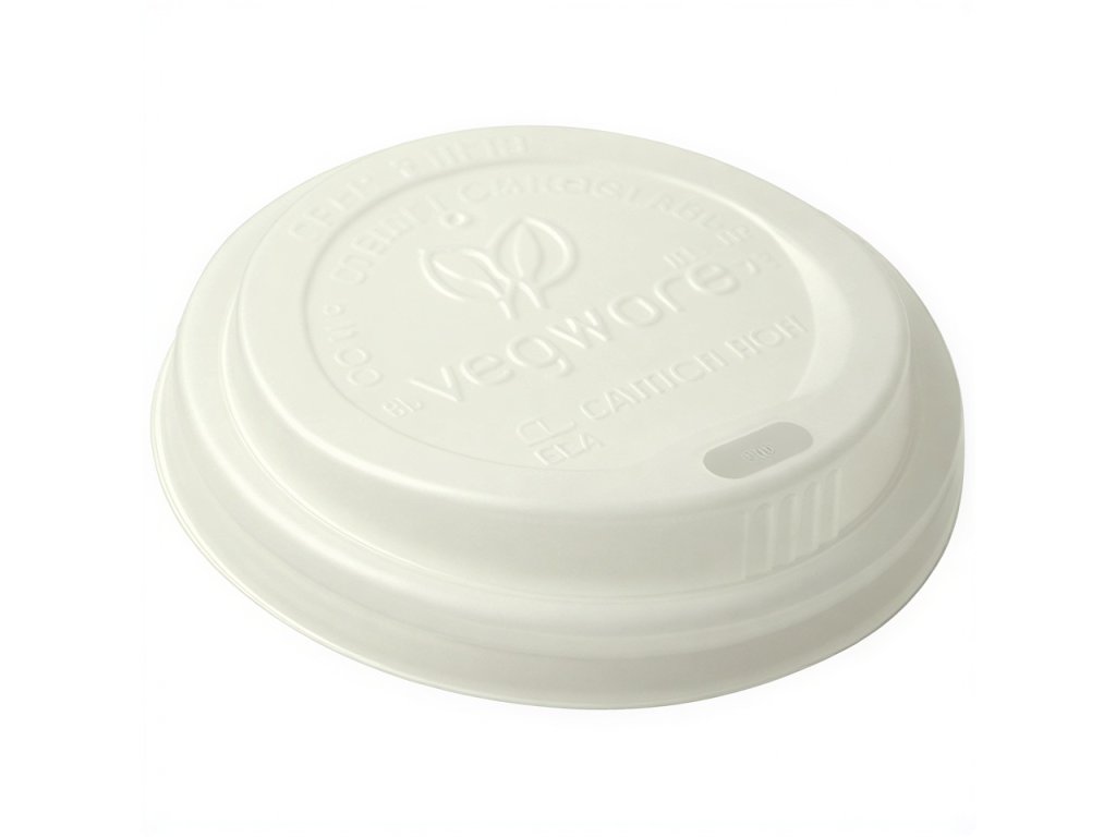 Biele viečka na poháre s priemerom 72 mm vyrobené z C-PLA. Pružnosť materiálu zaisťuje veľmi účinné utesnenie pohára.