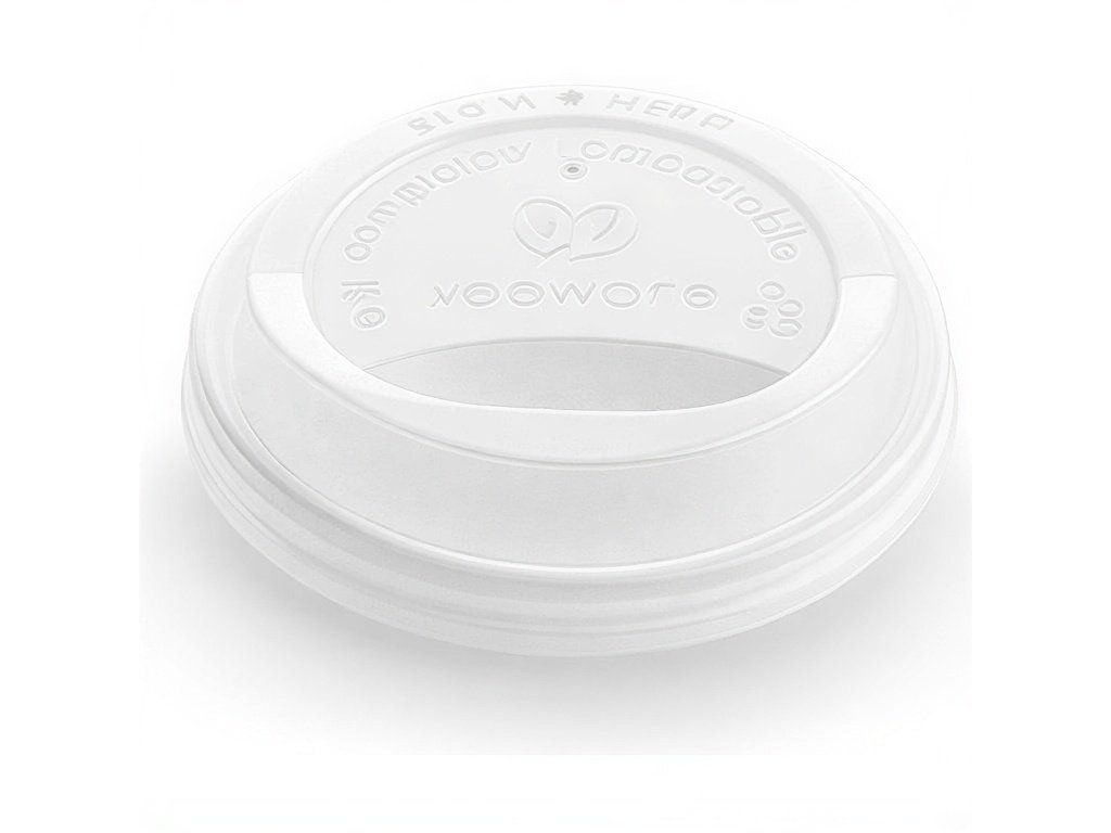 Biele viečka na poháre s priemerom 80 mm, vyrobené z C-PLA. Pružnosť materiálu zaisťuje veľmi účinné utesnenie pohára.