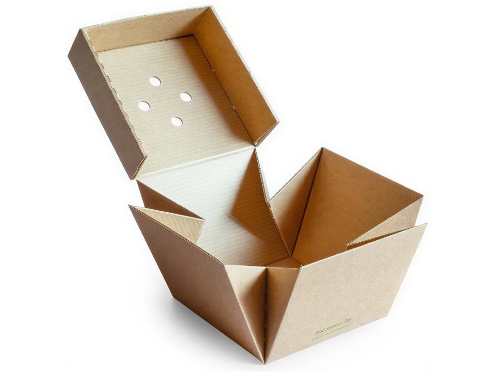Vyrobené z hrubého, odolného proti vlhkosti kartónu. Otvory v veku a bočných stenách umožňujú potravinám „dýchať“.