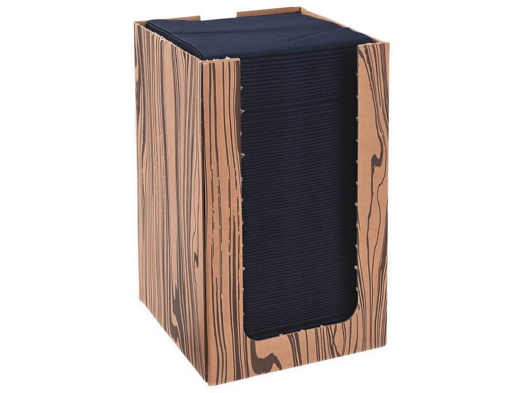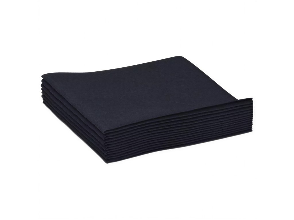 Čierne obrúsky s rozmermi 20 cm x 20 cm v praktickom kartónovom zásobníku