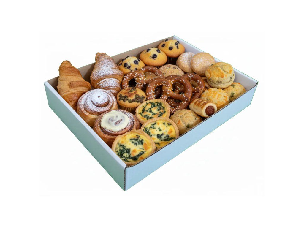 Krabica na catering je ideálna na prepravu rôznych druhov pečiva – od bagelov, rožkov a šišiek až po koláče, sušienky a slané snacky. Jej konštrukcia zaisťuje stabilitu a ochranu produktov počas prepravy.