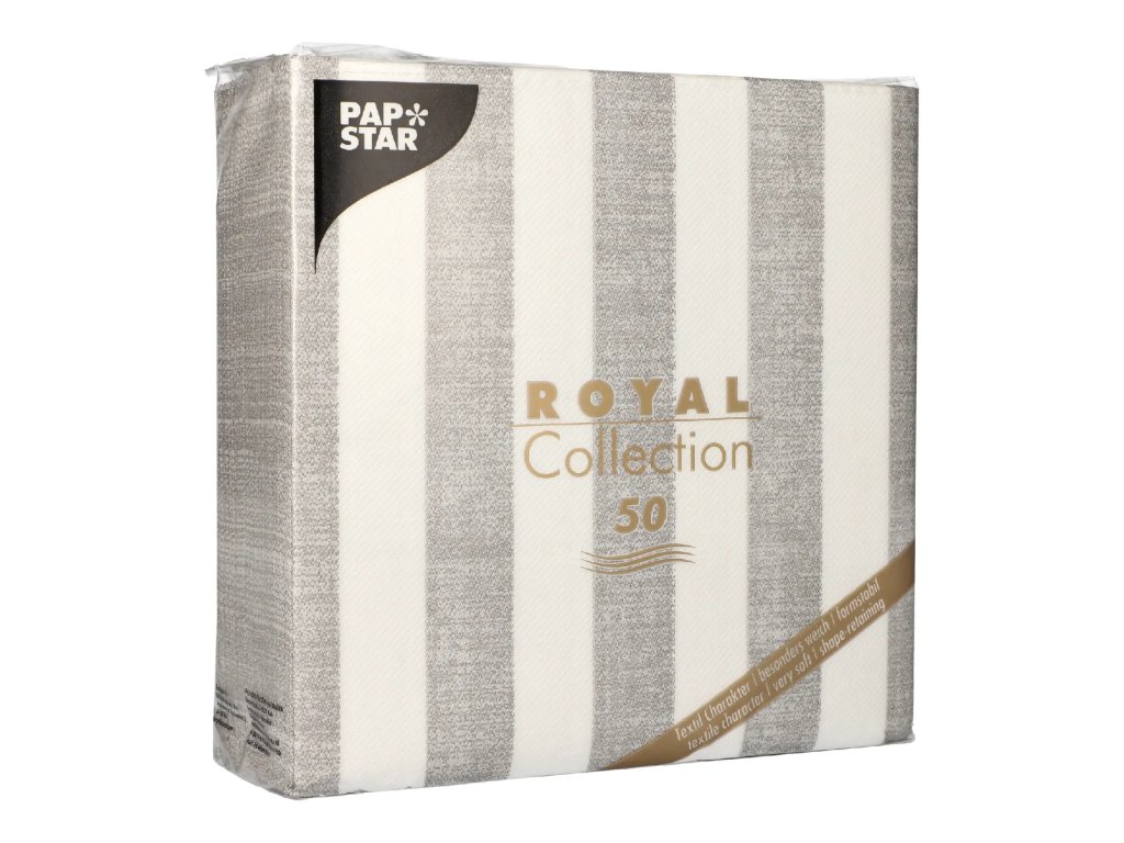 Trojvrstvové servítky s bielymi a sivými pruhmi, rozmery 40 cm x 40 cm, zo série Royal Collection