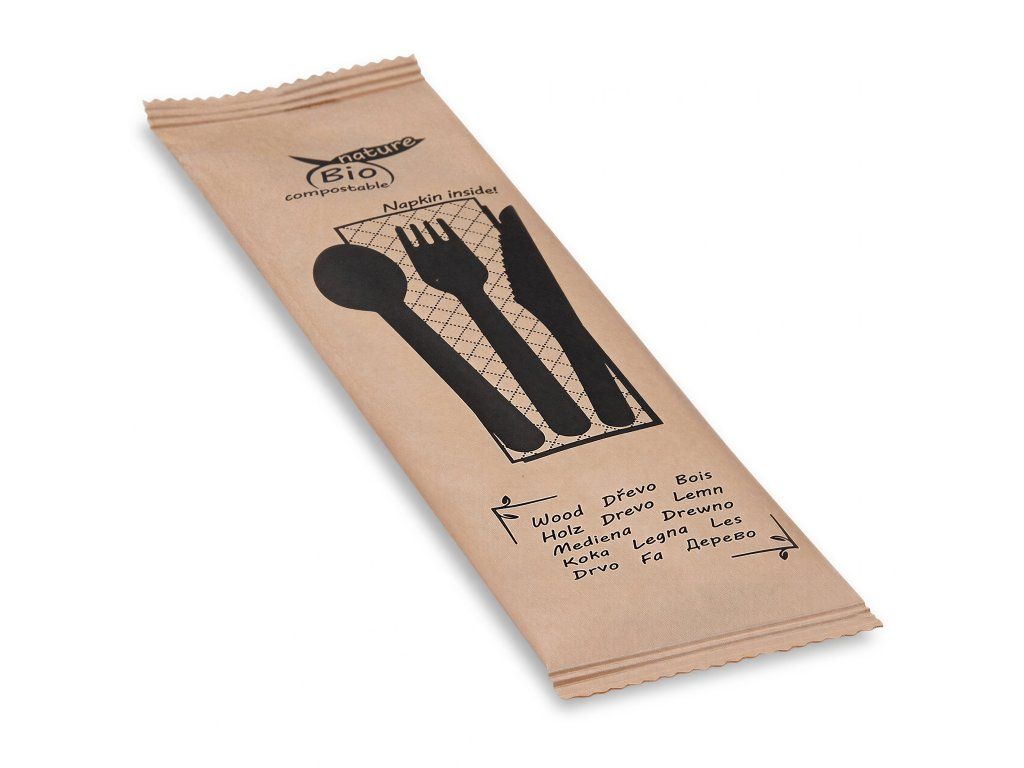 Sada drevených príborov - WNŁ + servítka, 50 ks.