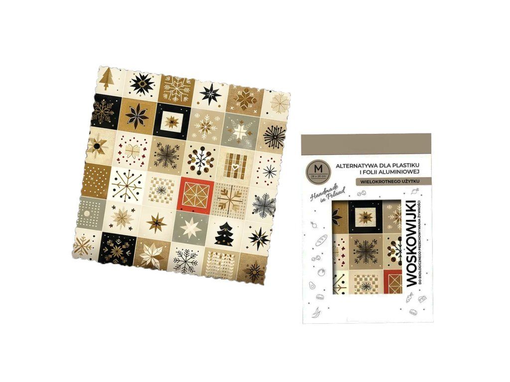 Voskovaná utierka „Vianočná mozaika“ veľkosť „M“ – 28 x 28 cm, 1 kus.